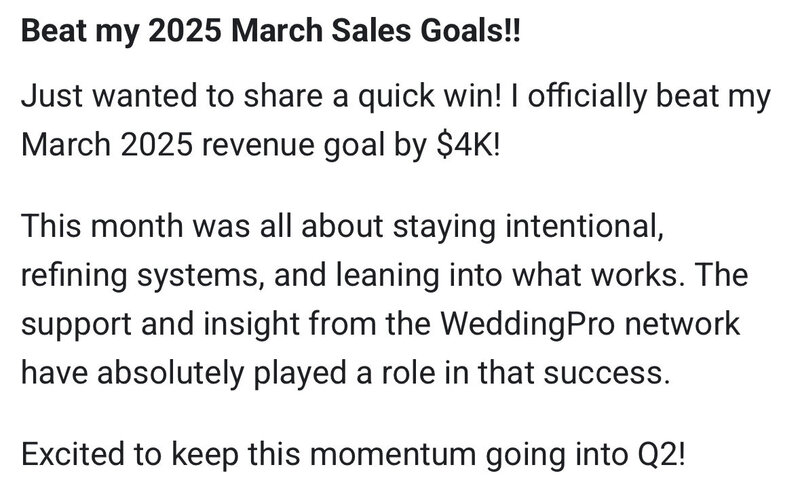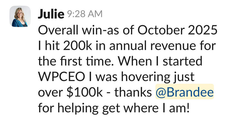 My first year in WPCEO I beat my revenue goal by 40%. I was SHOCKED (and thrilled!).