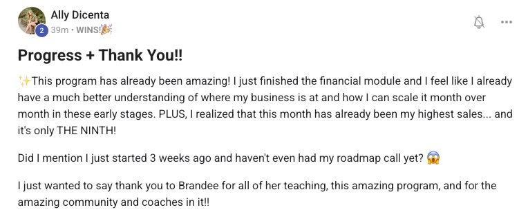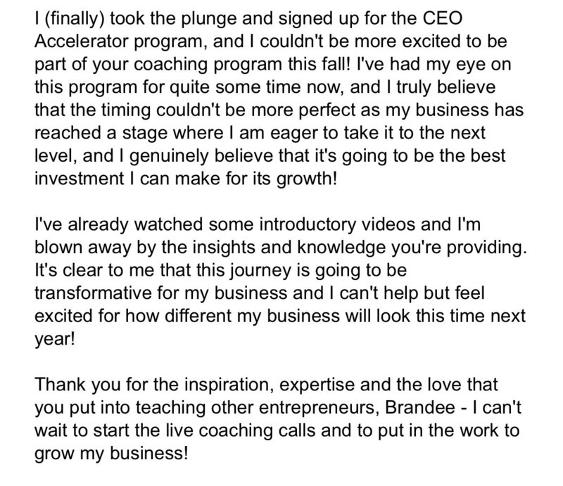 Brandee, Katy, and her team have helped me grow and manage my team, understand the numbers in my business which I previously used to avoid, and most importantly feel confident as an entrepreneur and business owner.